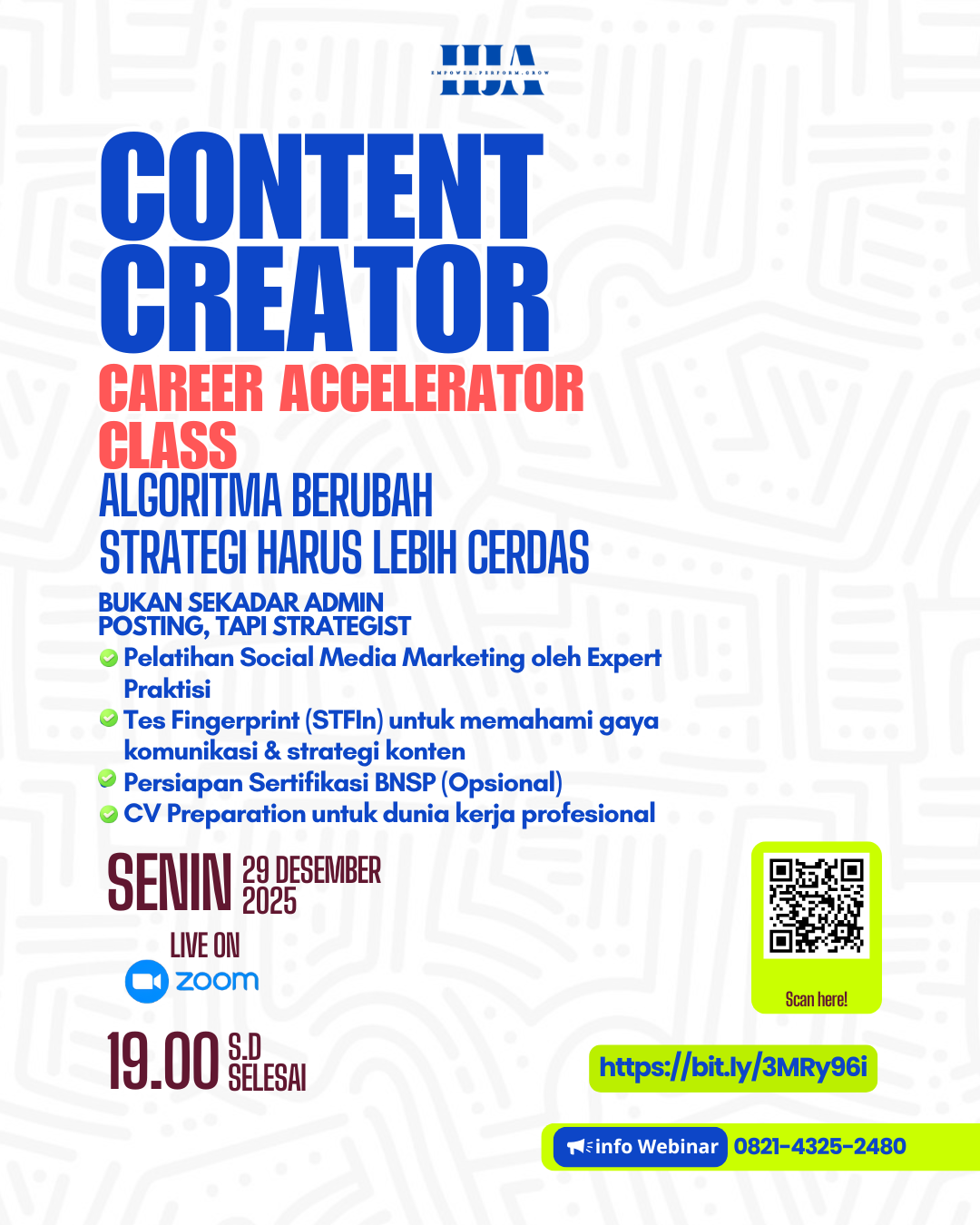 Kelas ini membentuk content creator yang tidak hanya viral, tetapi bernilai dan dibutuhkan brand.