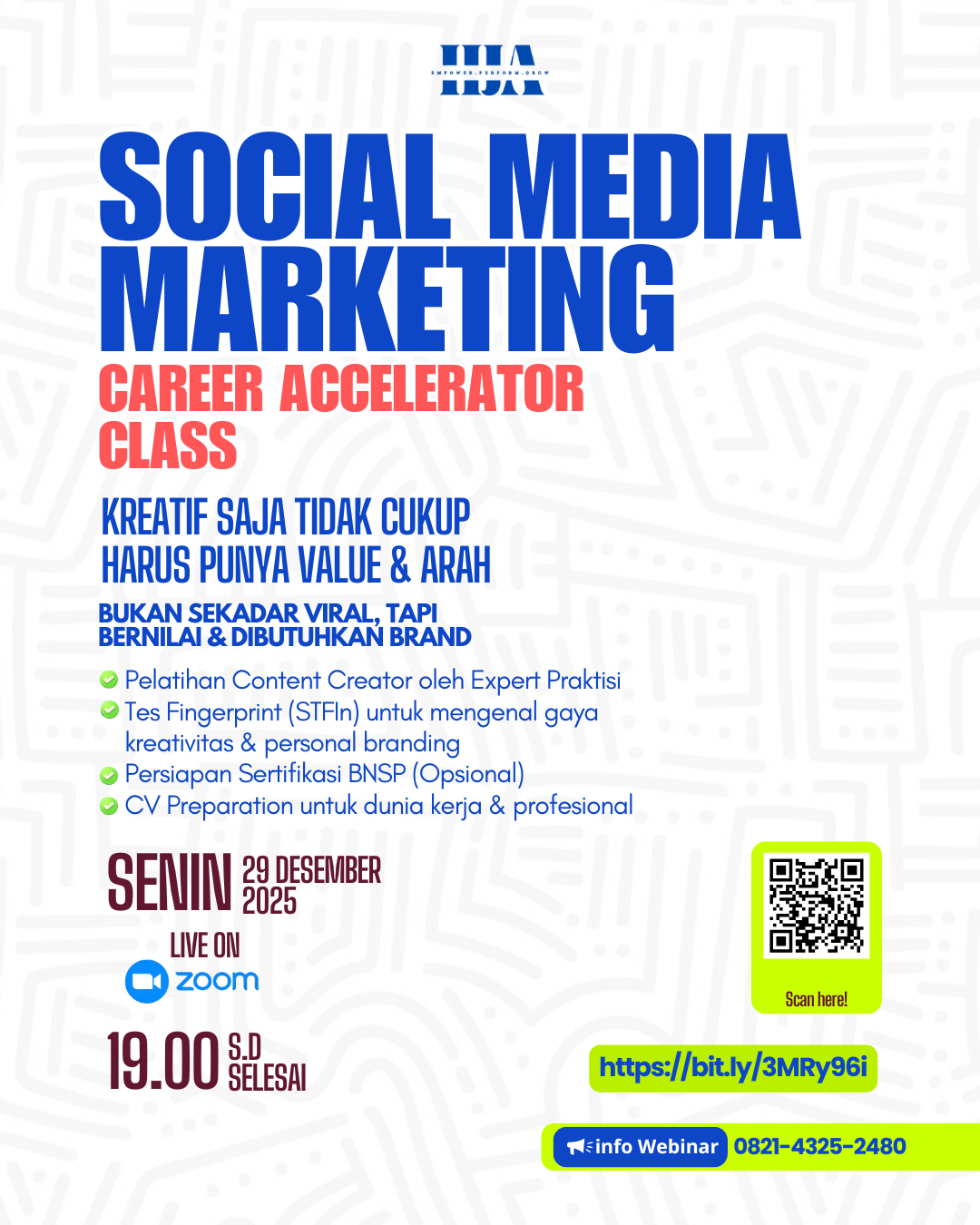 Kelas ini dirancang untuk membentuk Social Media Marketer yang paham strategi, audiens, dan data, bukan sekadar admin posting.
